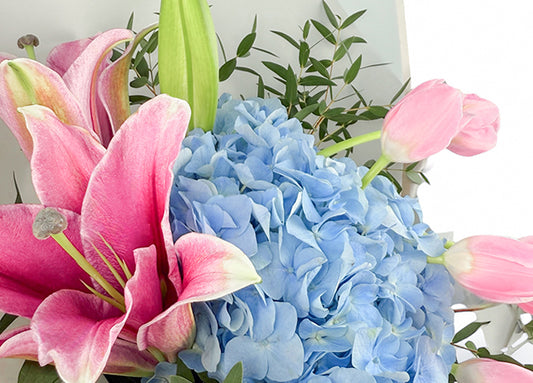 Brighten someone’s day with our stunning mixed coloured flower arrangements — a joyful fusion of premium roses, lilies, sunflowers, and baby’s breath. Each box is thoughtfully styled to deliver visual delight and heartfelt emotion.