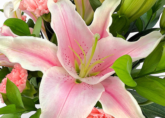 Bright Pink Roses With White Lilies Gift Box (ROA70)