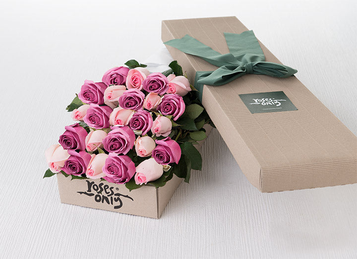 24 Mixed Pink & Mauve Roses Gift Box (ROA10-024)